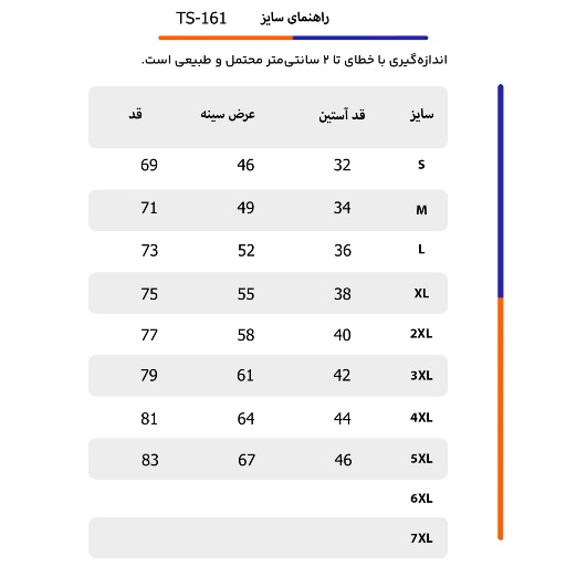 | سایز | M L XL XXL 3XL 4XL 5XL |