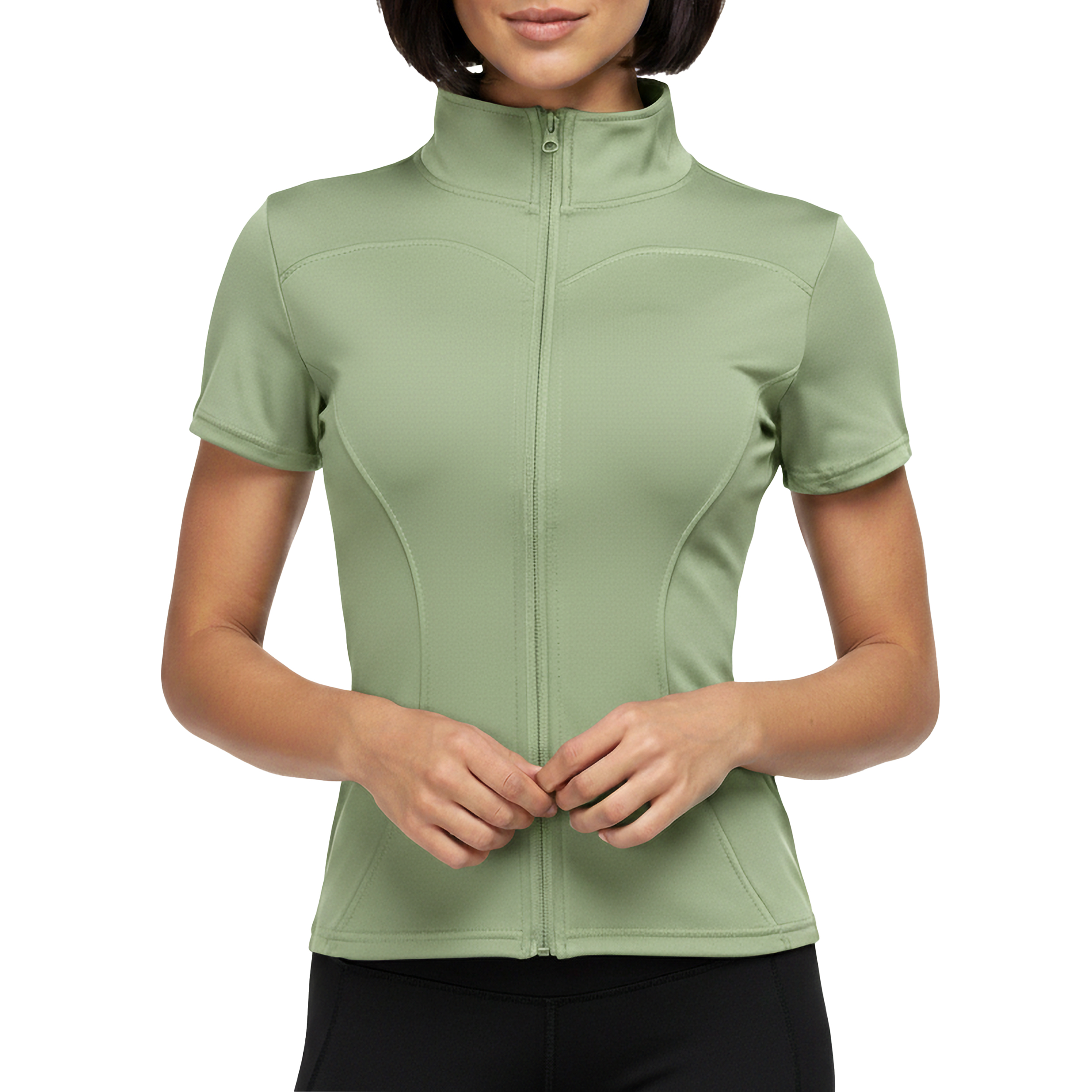 سویشرت آستین کوتاه زیپی زنانه کد BT-101 رنگ سبز