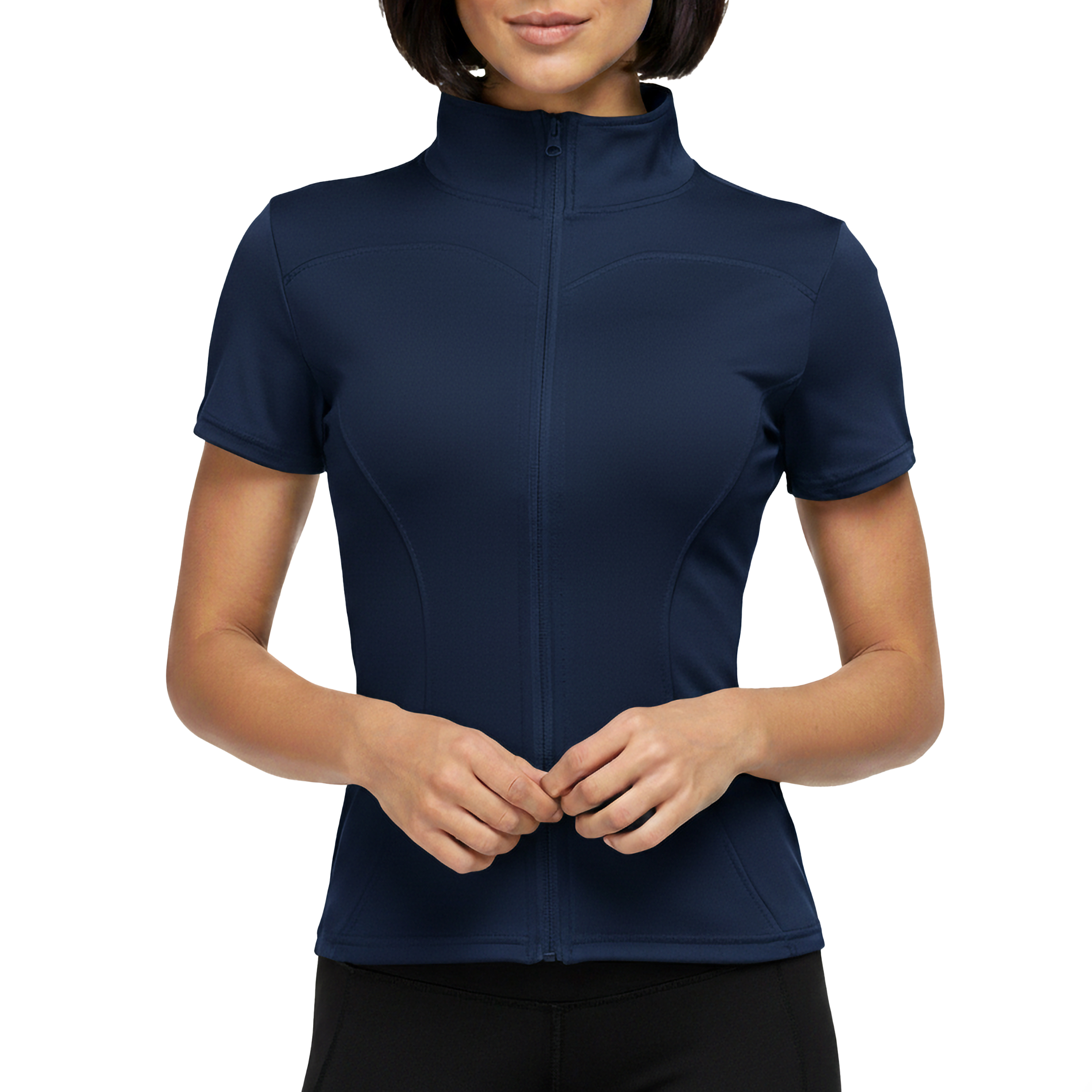 سویشرت آستین کوتاه زیپی زنانه کد BT-101 رنگ سورمه ای